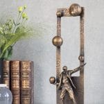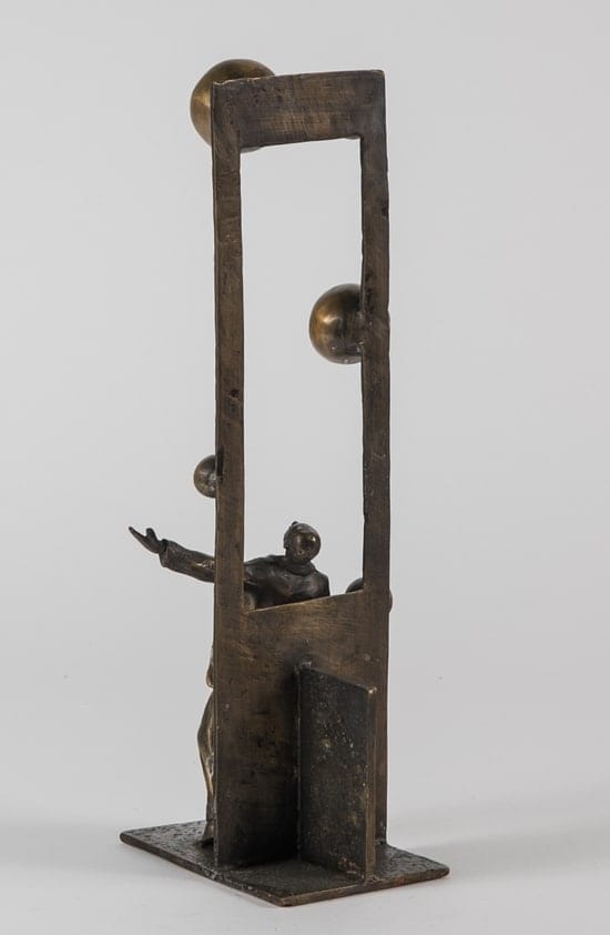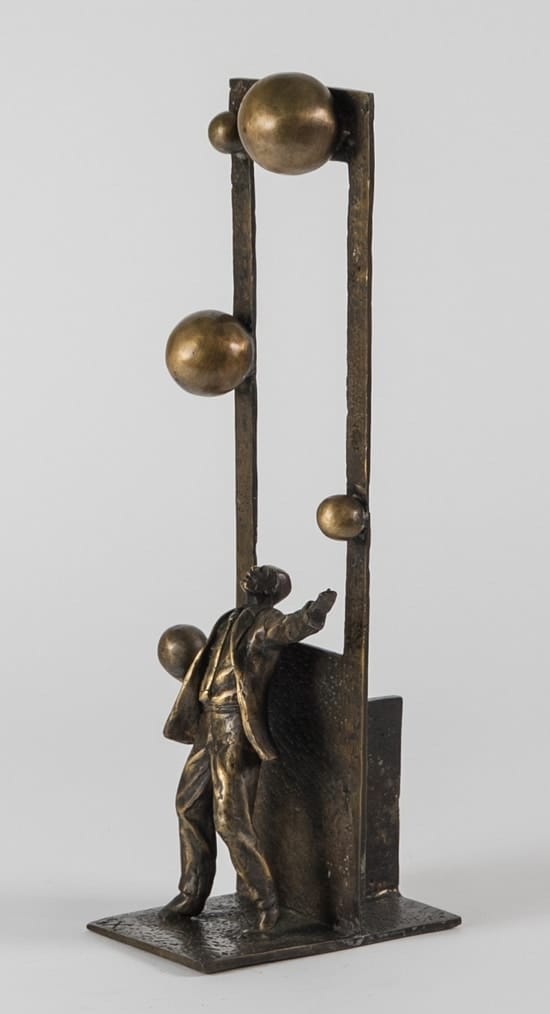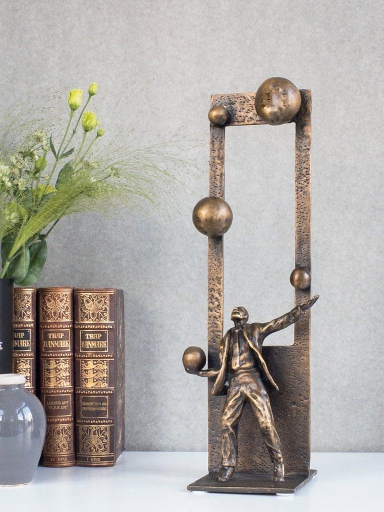 Skulpturen viser med al tydelighed at manden magter at have mange bolde i luften.