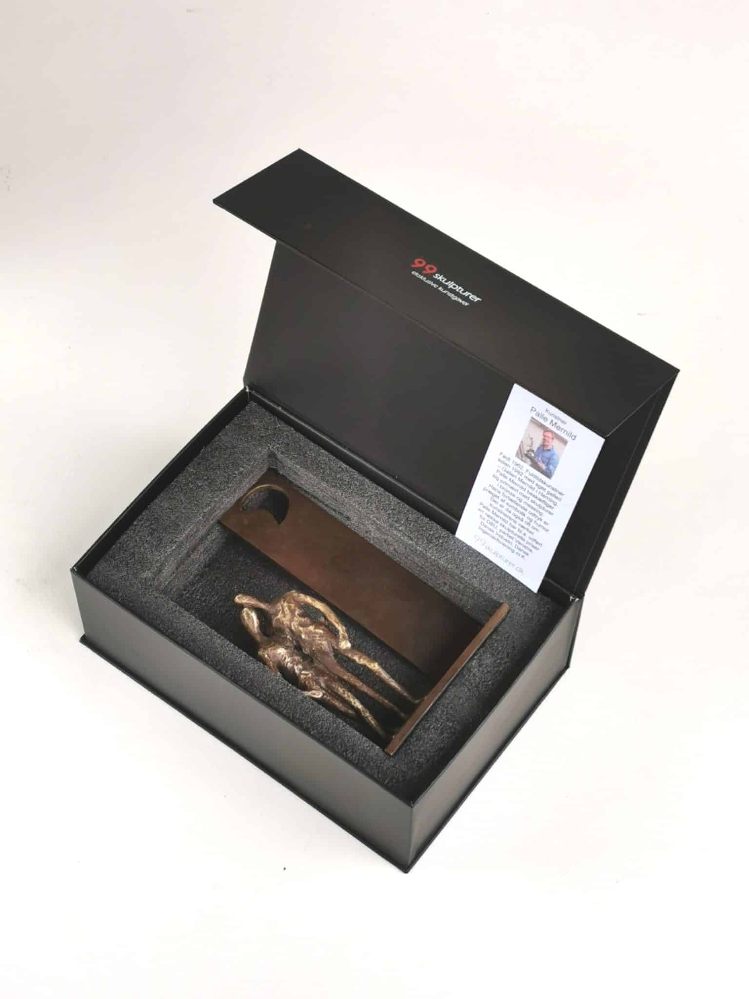 Skulpturen leveres i en smuk gaveæske med vedlagt beskrivelse af kunstner samt kunstværk.