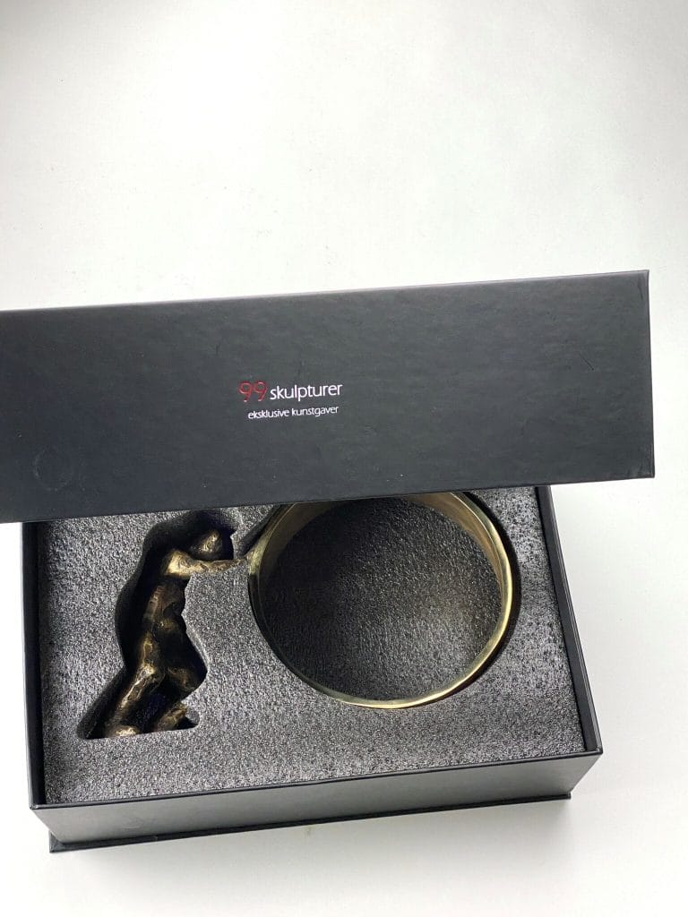 Skulpturen leveres i en flot gaveæske med vedlagt beskrivelse af kunstner samt kunstværk.