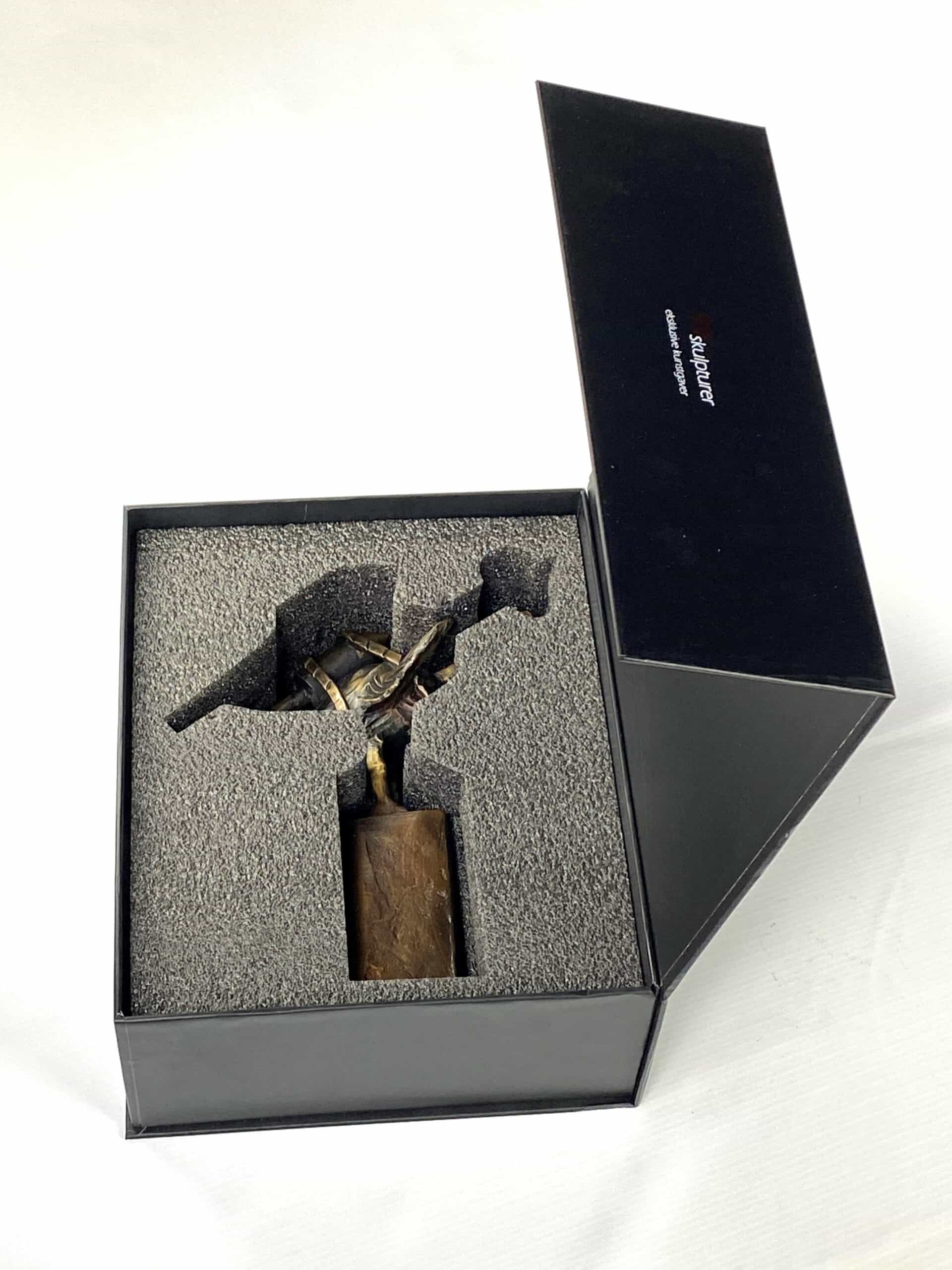 Skulpturen leveres i en flot gaveæske med vedlagt beskrivelse af kunstner samt kunstværk.