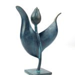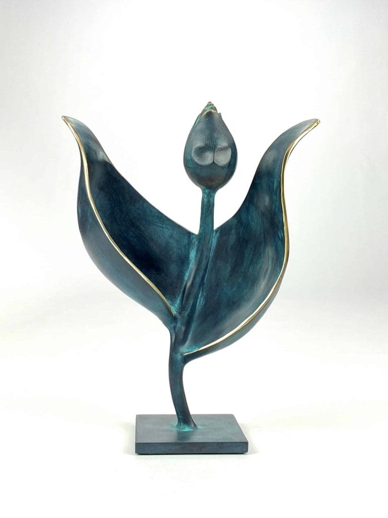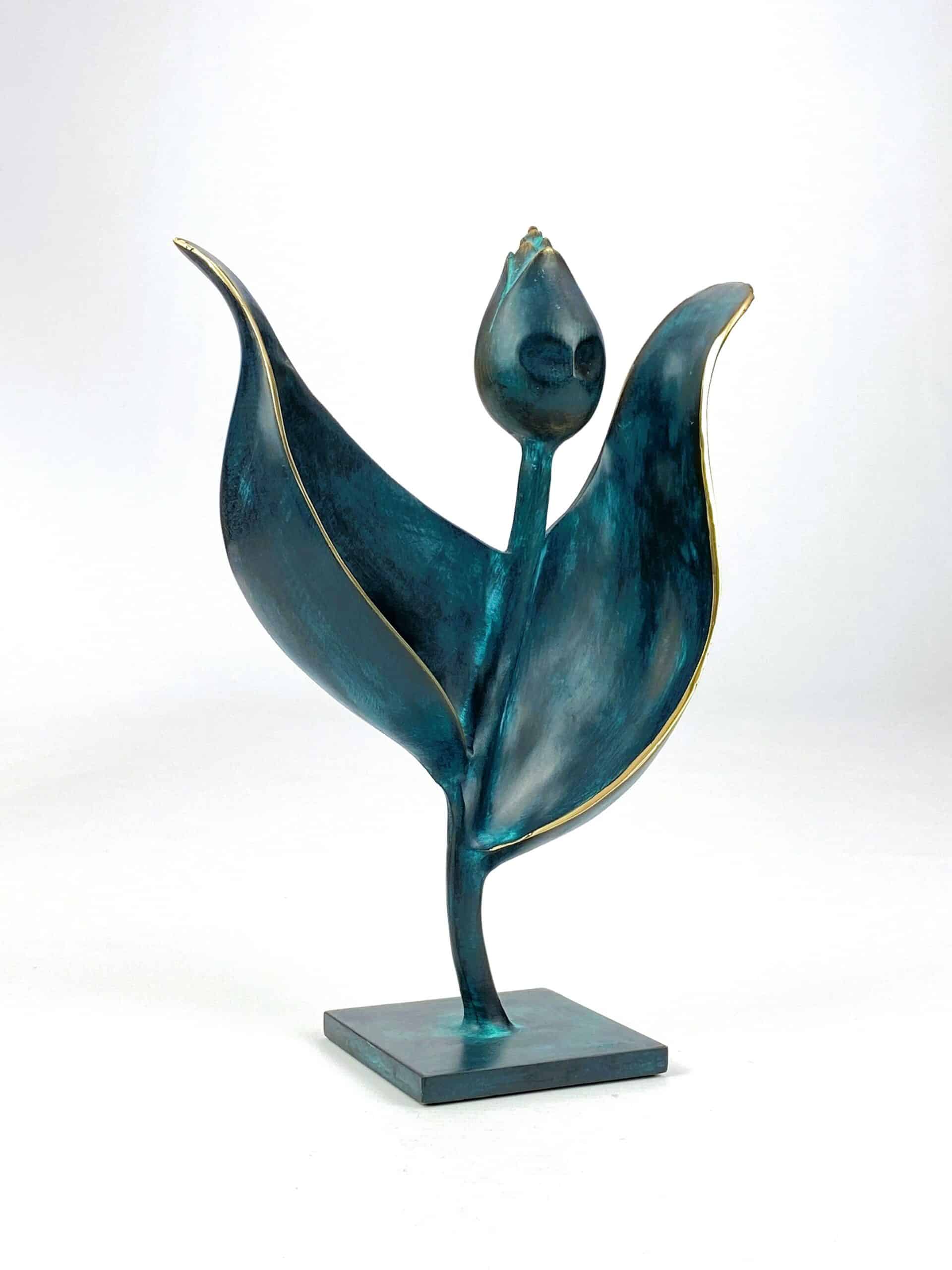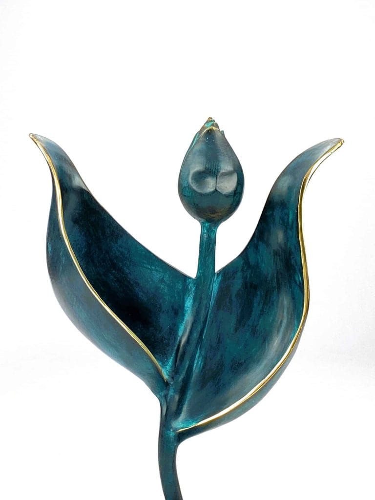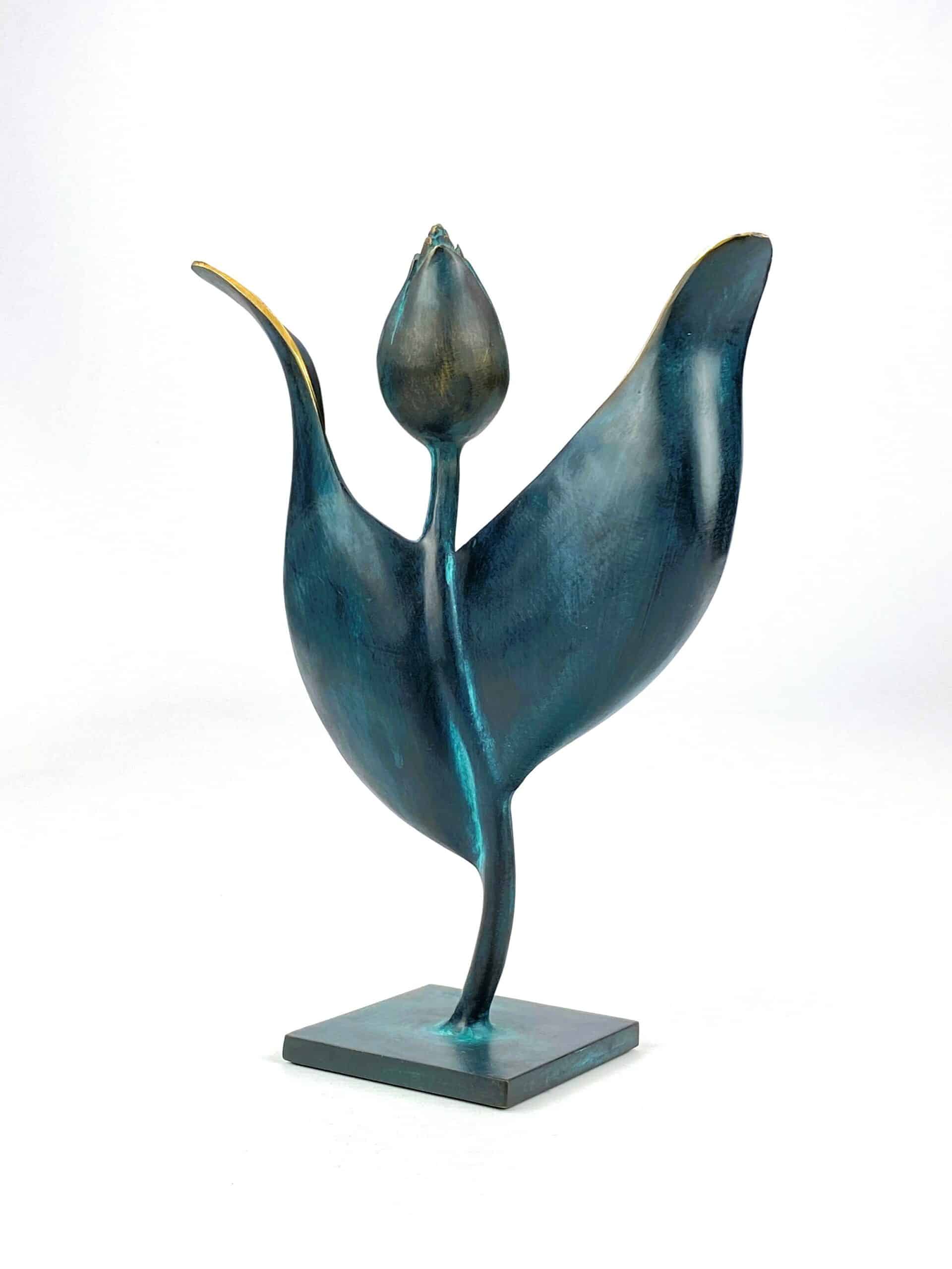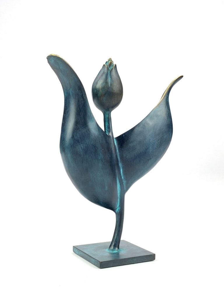 Skulpturen af en blomst, er støbt i bronze og efterfølgende patineret og poleret, så hver enkel skulptur står med sit eget udtryk.