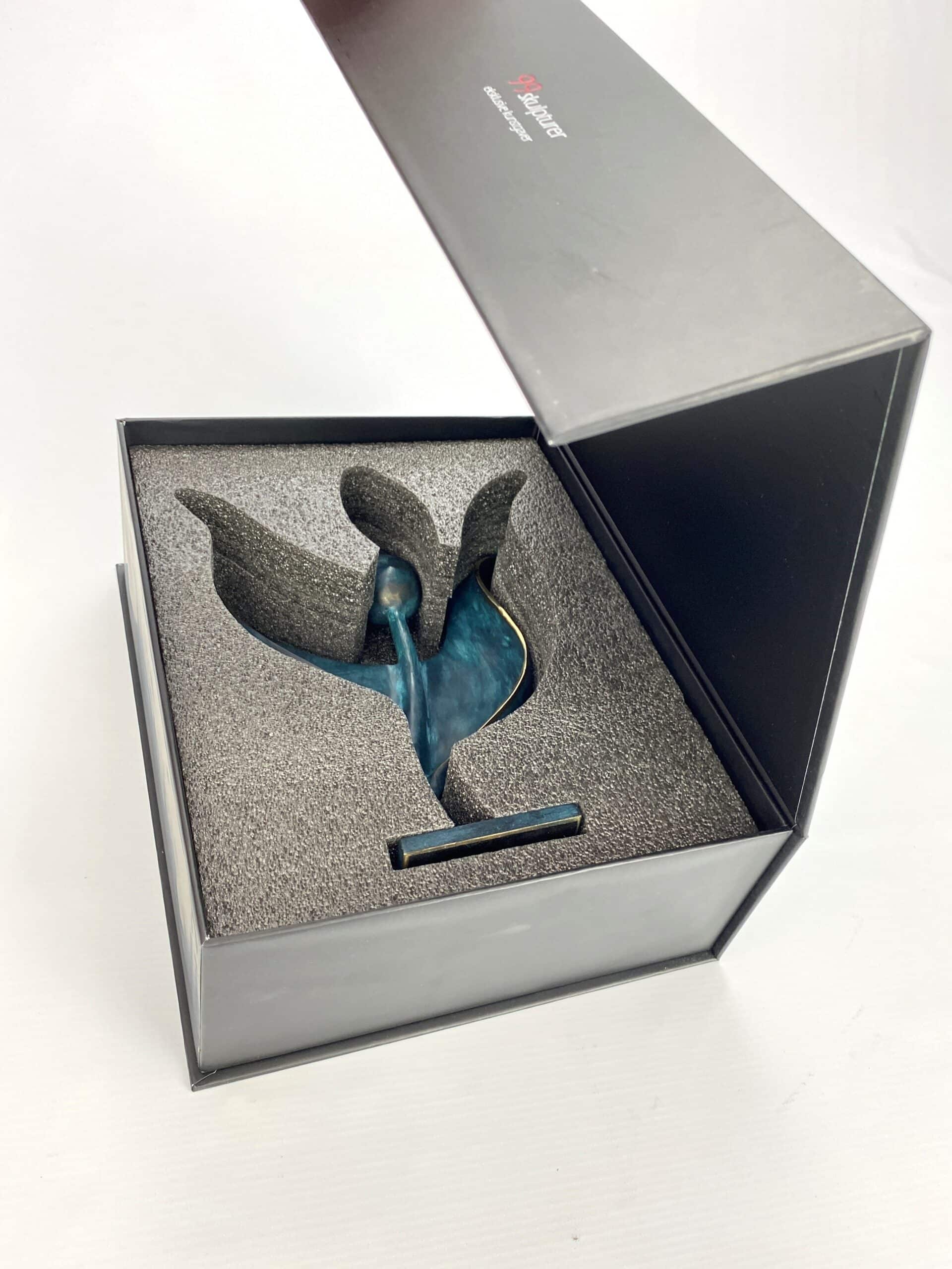 Skulpturen leveres i en flot gaveæske med vedlagt beskrivelse af kunstner samt kunstværk.