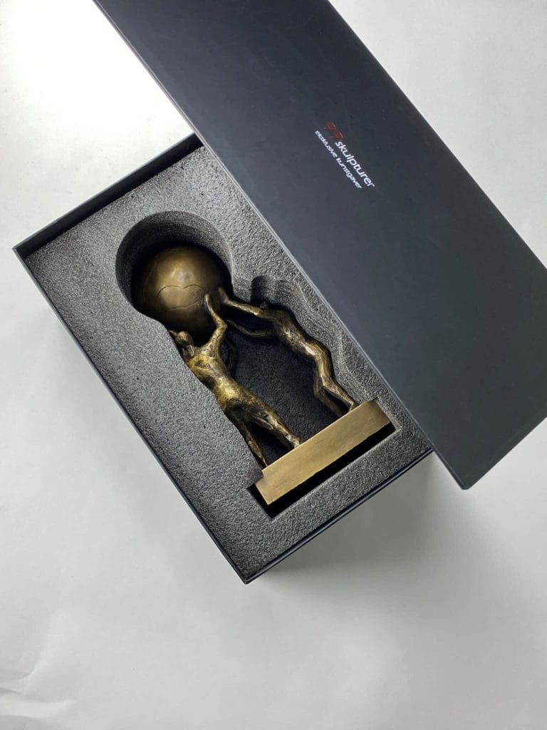 Skulpturen leveres i en flot gaveæske med vedlagt beskrivelse af kunstner samt kunstværk.