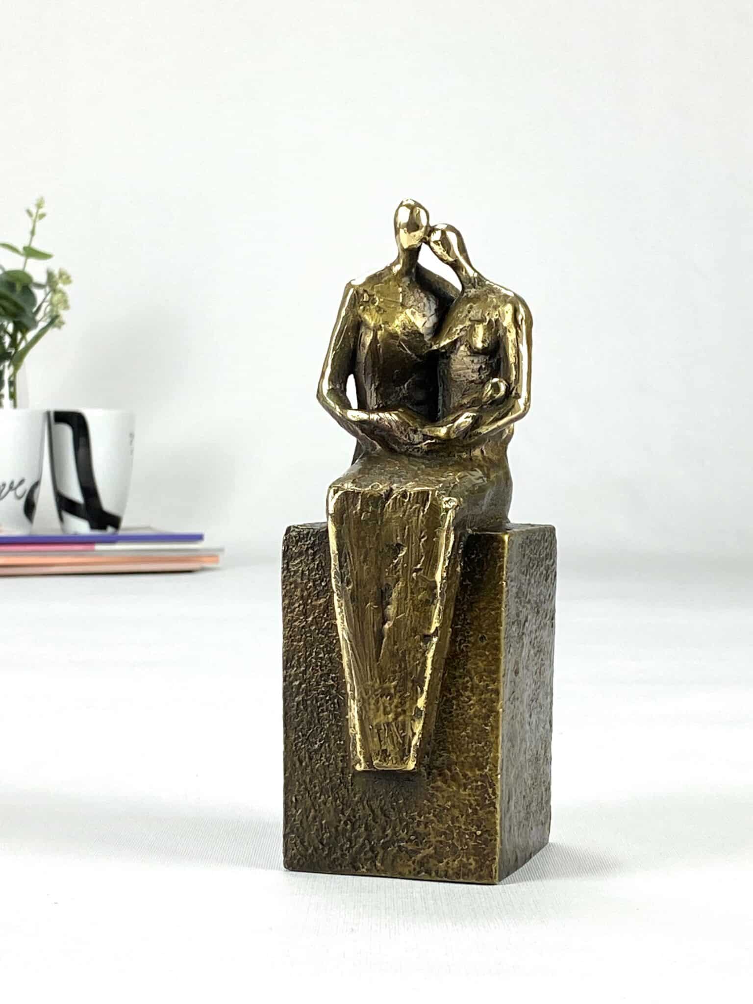 Min familie med 1 barn - bronzeskulptur som på smukkeste vis har familien i fokus