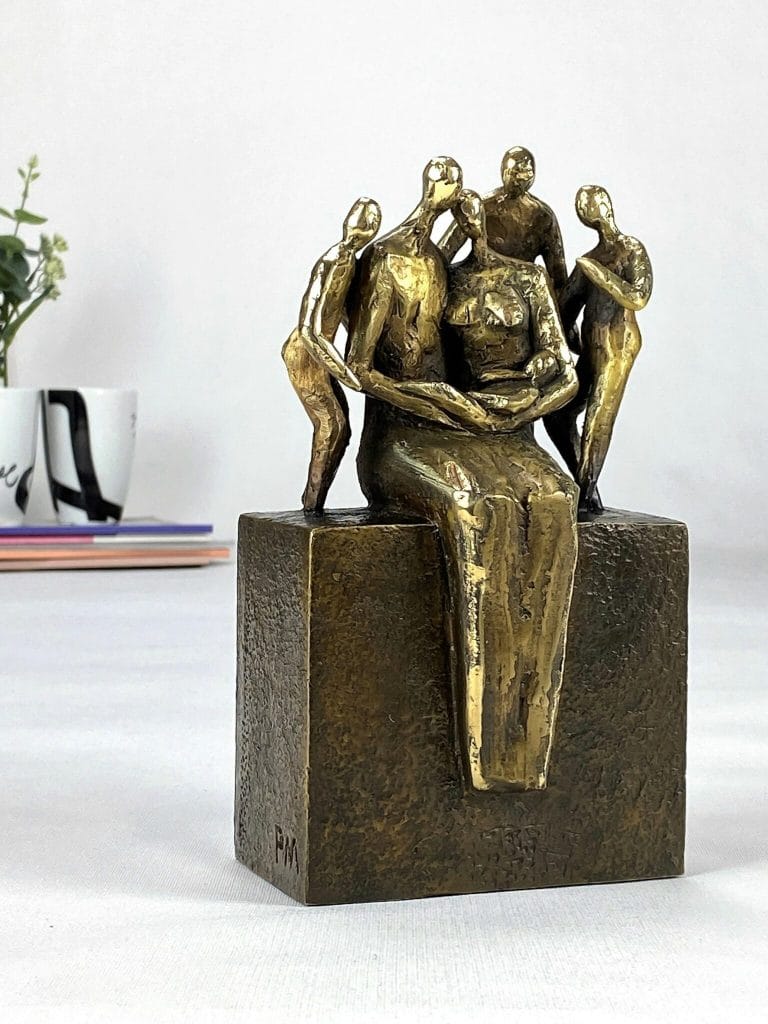 MIN FAMILIE MED 4 BØRN – Bronzeskulptur med familien i fokus