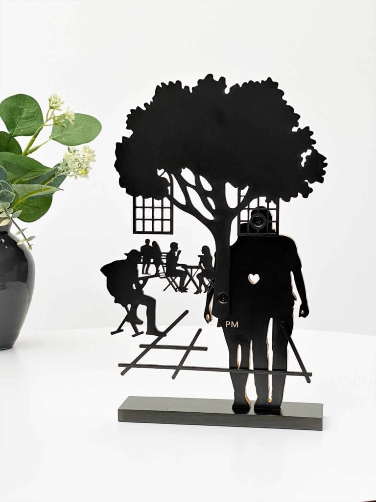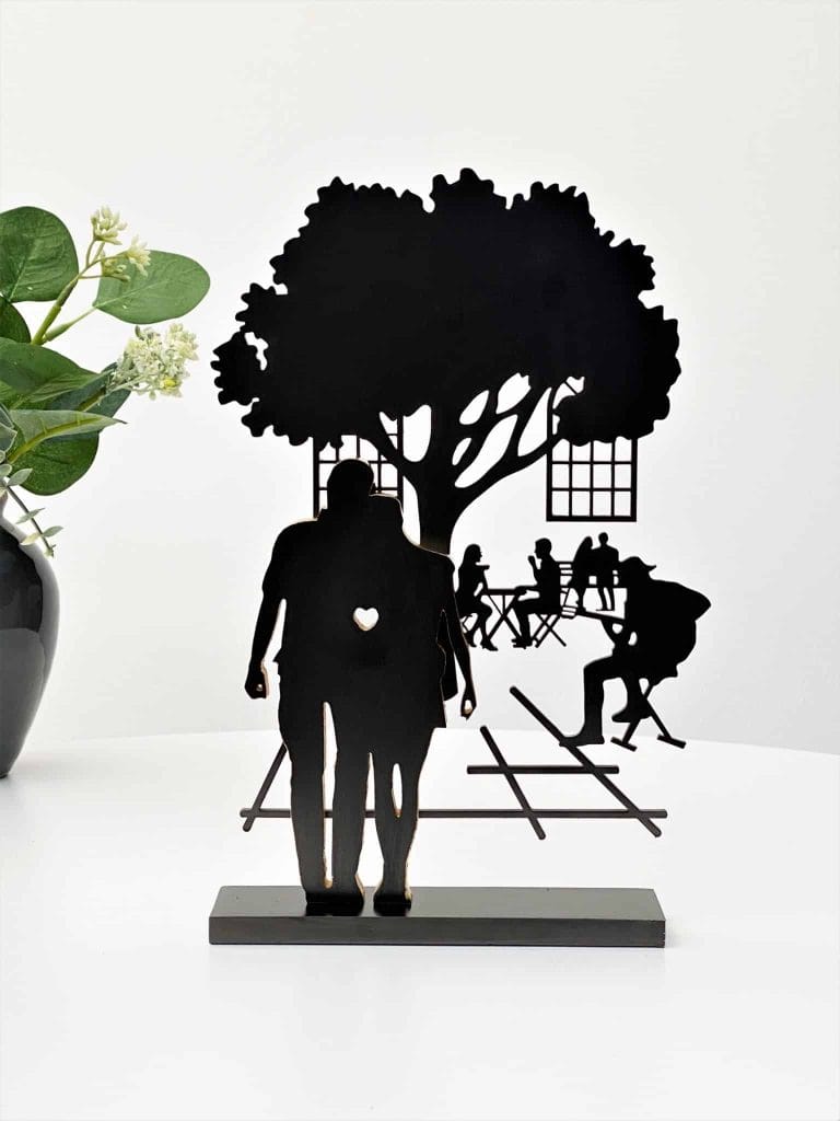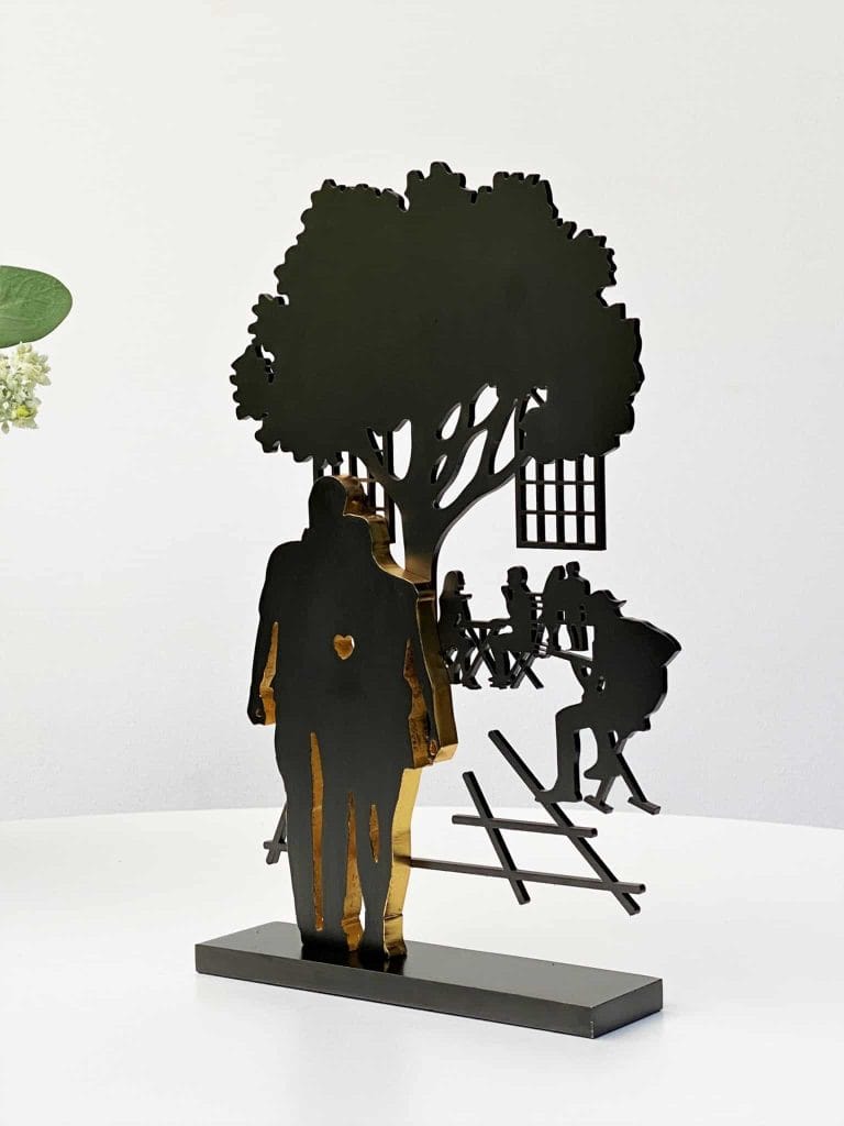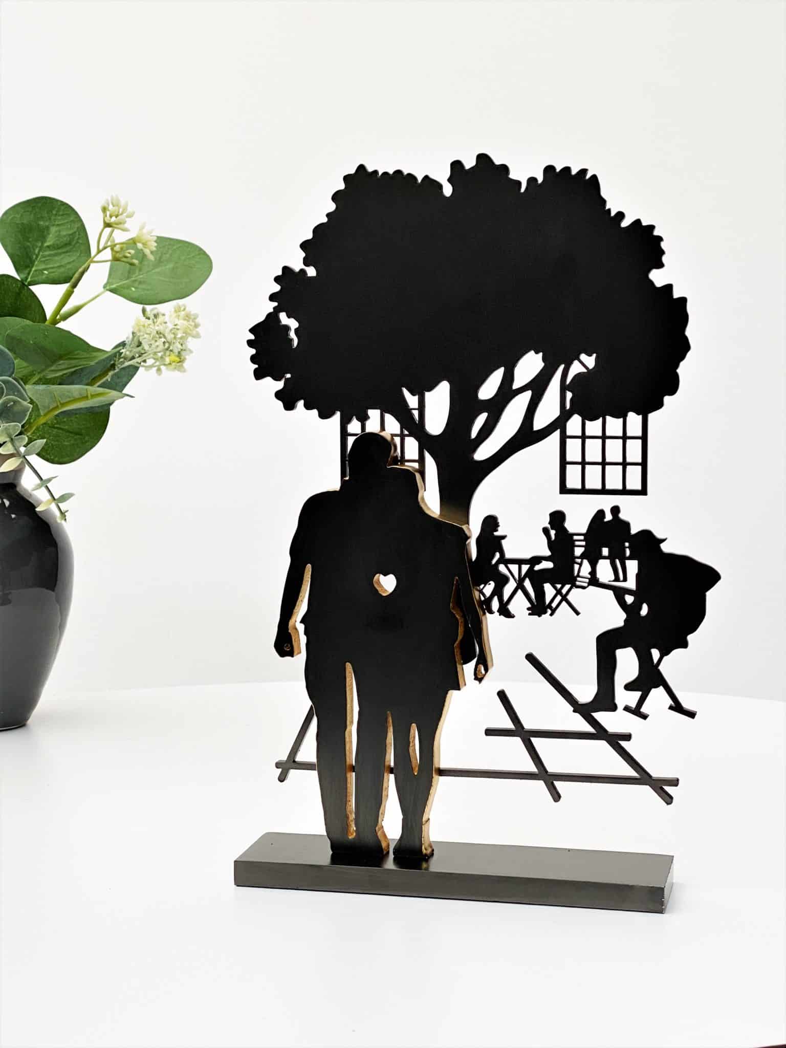 Skulpturen er en smuk hyldest til kærligheden og de stille stunder i tosomhed. Perfekt som gave til brudeparret, jubilæumsparret eller til den, du elsker – en æstetisk og meningsfuld gave, der bliver ved med at tale gennem livet.