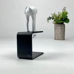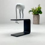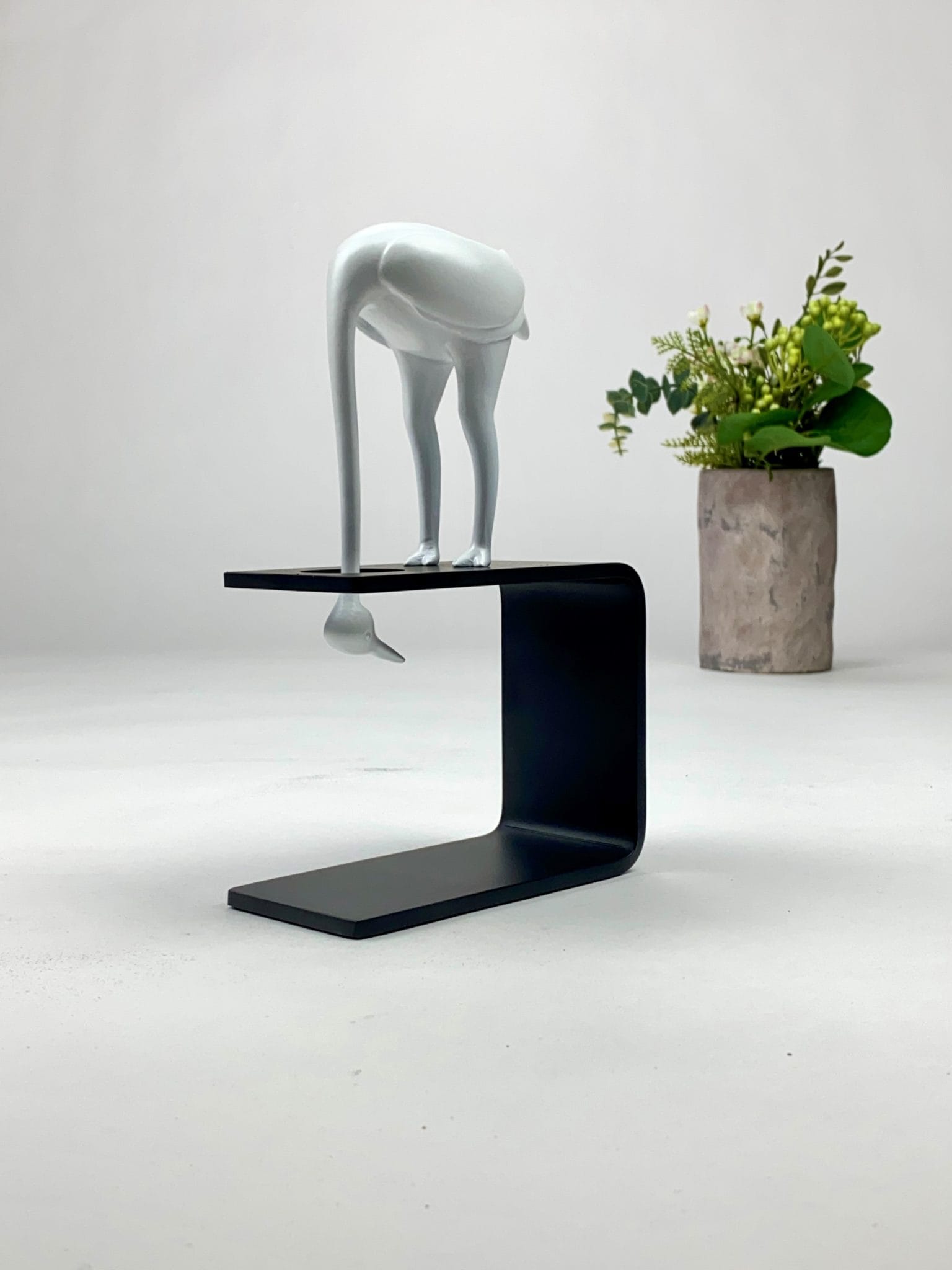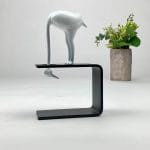 Skulpturen er støbt i zink og monteret på sokkel af premiumstål. Efterfølgende lakeret i farverne sort og hvid.