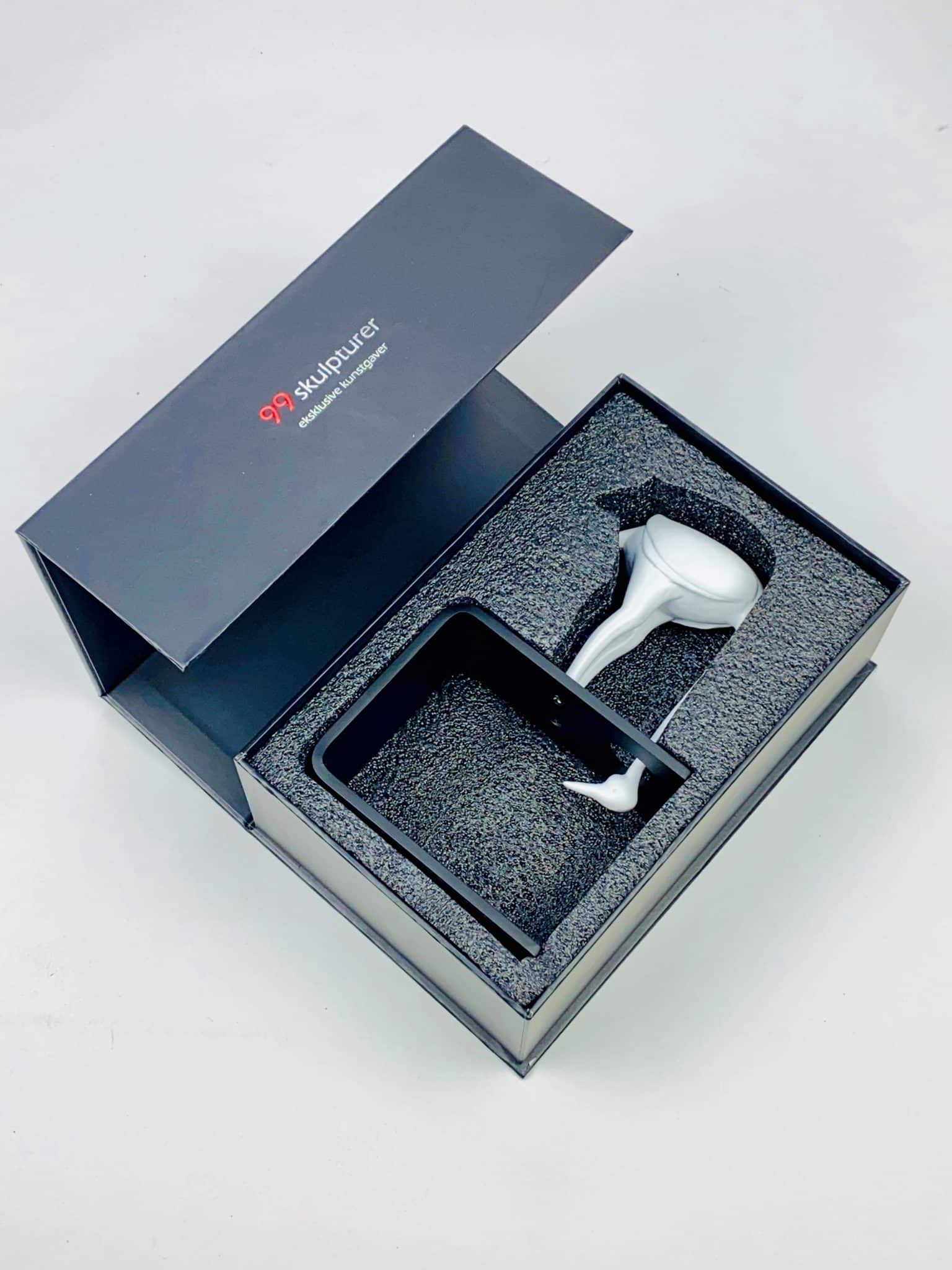 Skulpturen leveres i en smuk gaveæske med vedlagt beskrivelse af kunstner samt kunstværk.