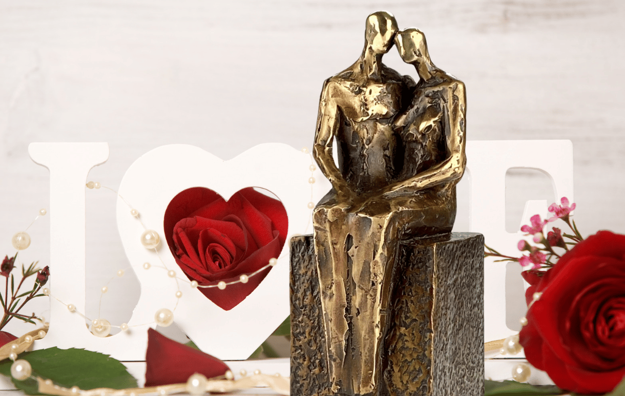 Vælger man en smuk skulptur med et kærlighedsbudskab og en symbolik, der erindrer parret om at fastholde kærligheden, og samtidig minder dem om den store dag – så rammer man stort set aldrig ved siden af.
